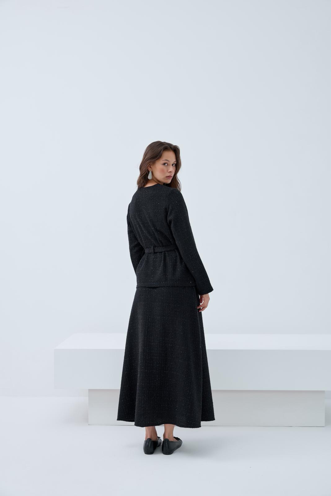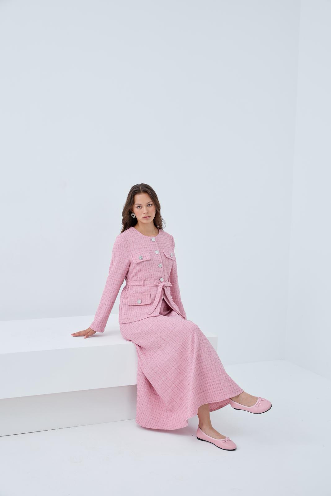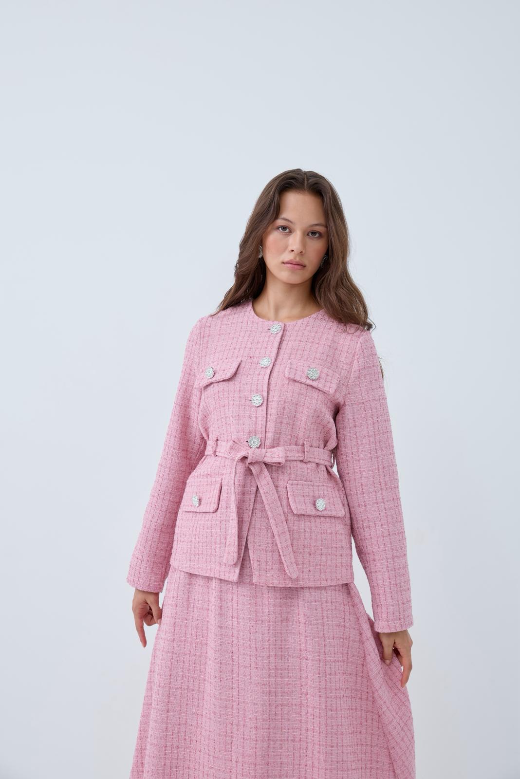 Discover the Chanel Étoile Set, a luxurious ensemble inspired by Parisian tweed elegance. Designed with a timeless cut, shimmering crystal-embellished buttons, and a waist belt to accentuate refined femininity, this set brings sophistication to every look. Perfect for special occasions or for elevating your everyday chic outfit.