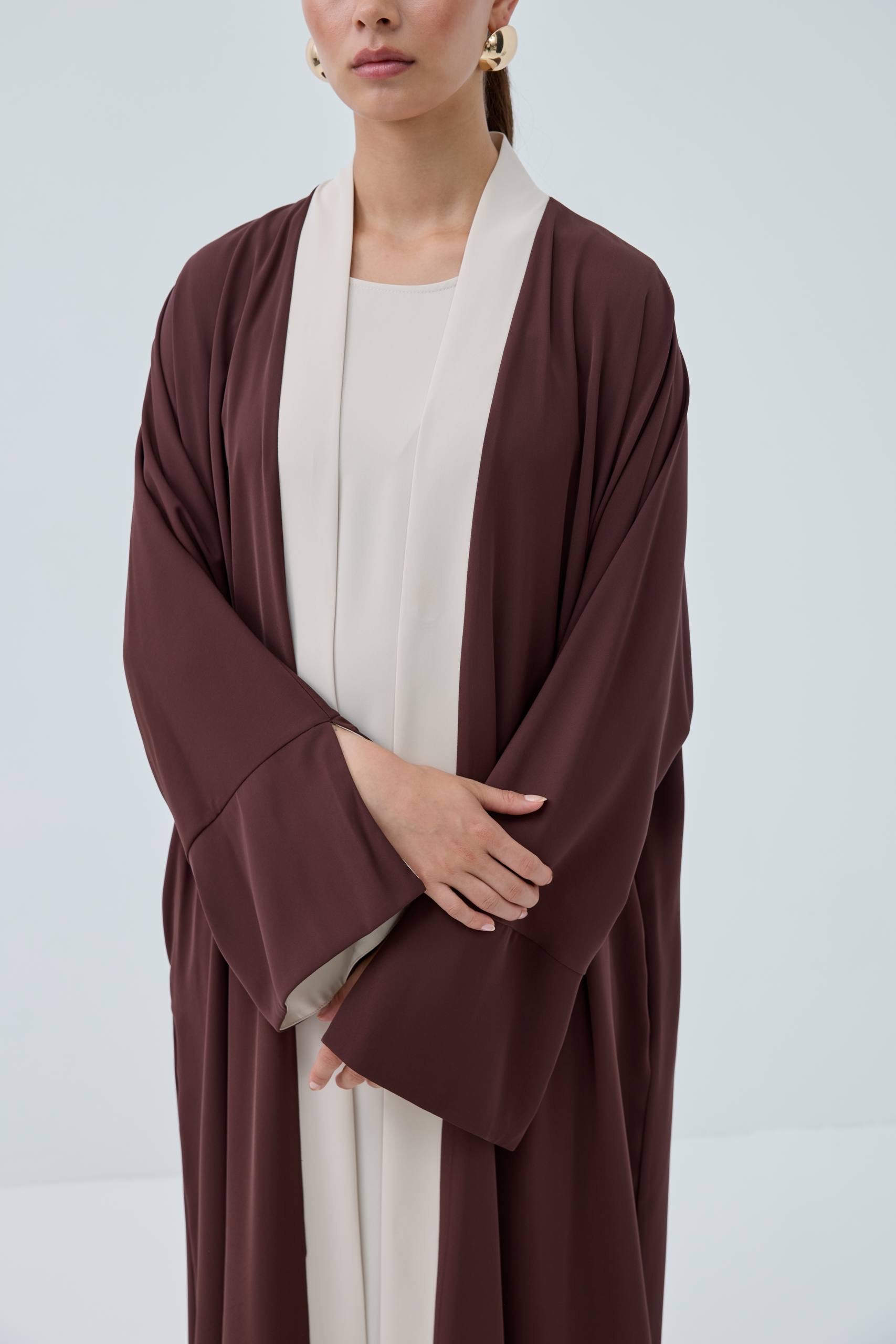 Embrace effortless elegance with the Santiago Flow Abaya, a two-piece ensemble crafted from soft and fluid Santiago fabric. Designed for comfort and graceful movement, it offers a lightweight drape that transitions seamlessly from day to evening. A timeless design that blends classic simplicity with modern sophistication, complete with a matching sleeveless inner liner. The outer abaya also features a practical pocket for added convenience. Easy to style with heels or flats for versatile elegance…