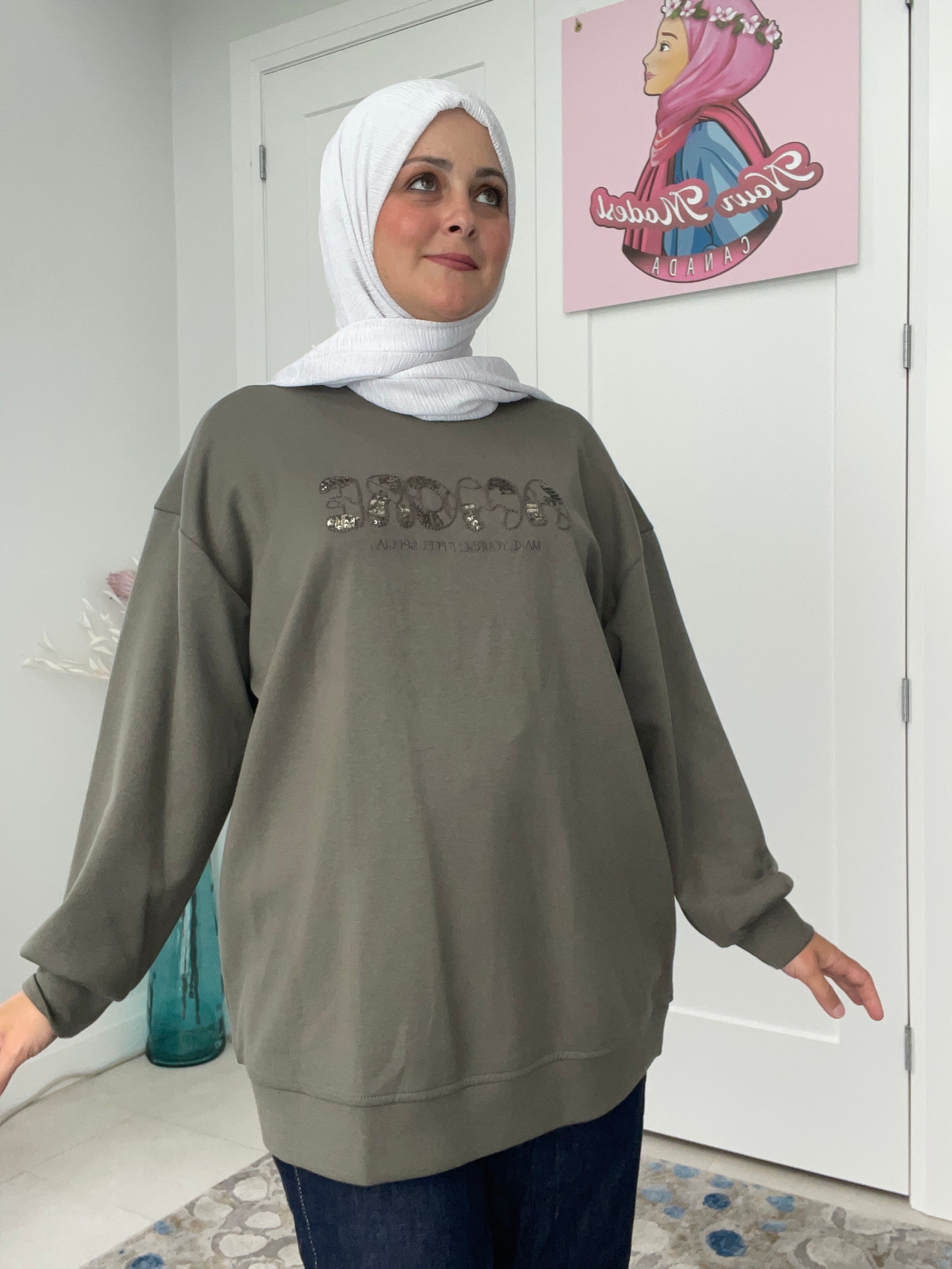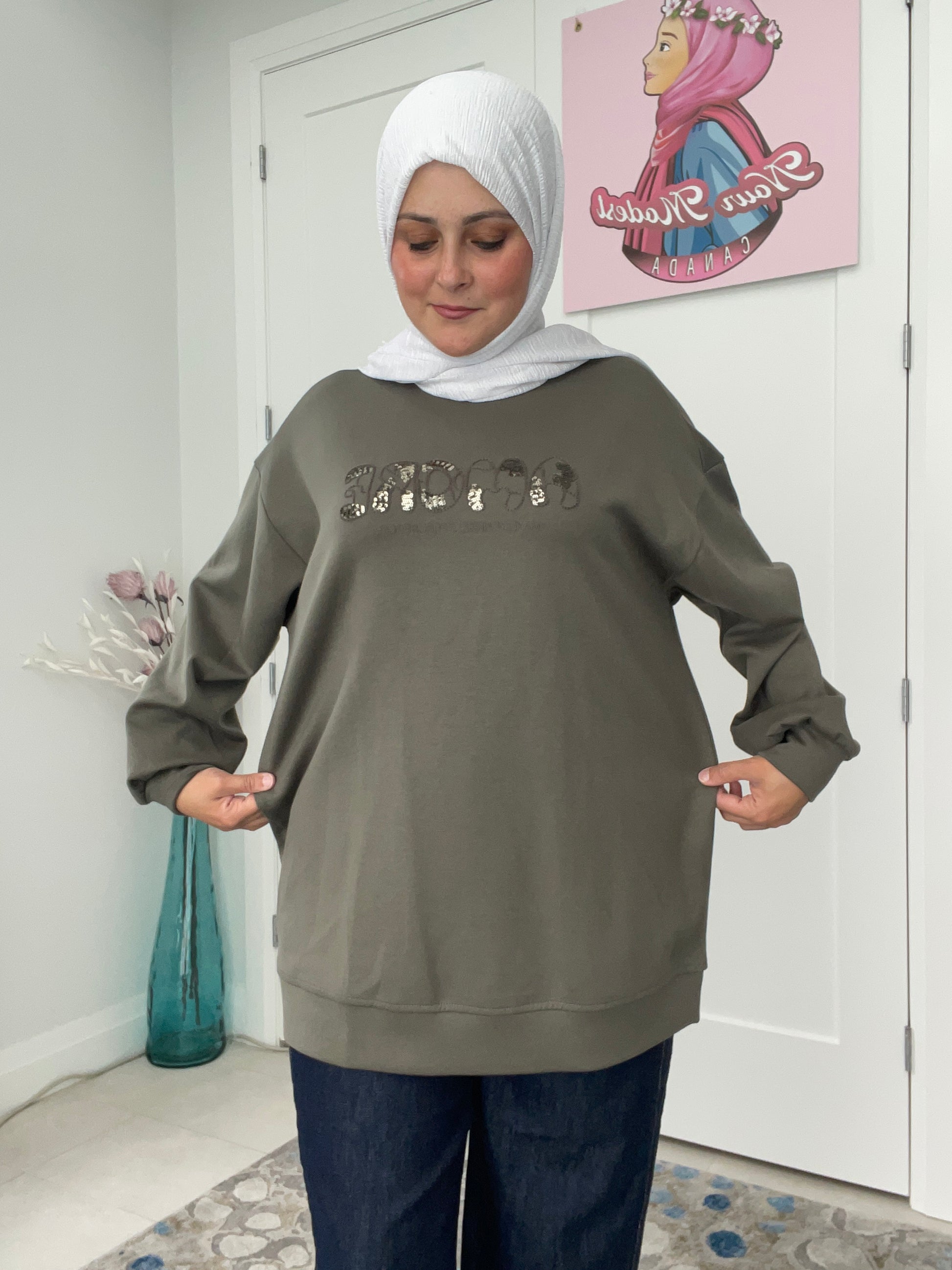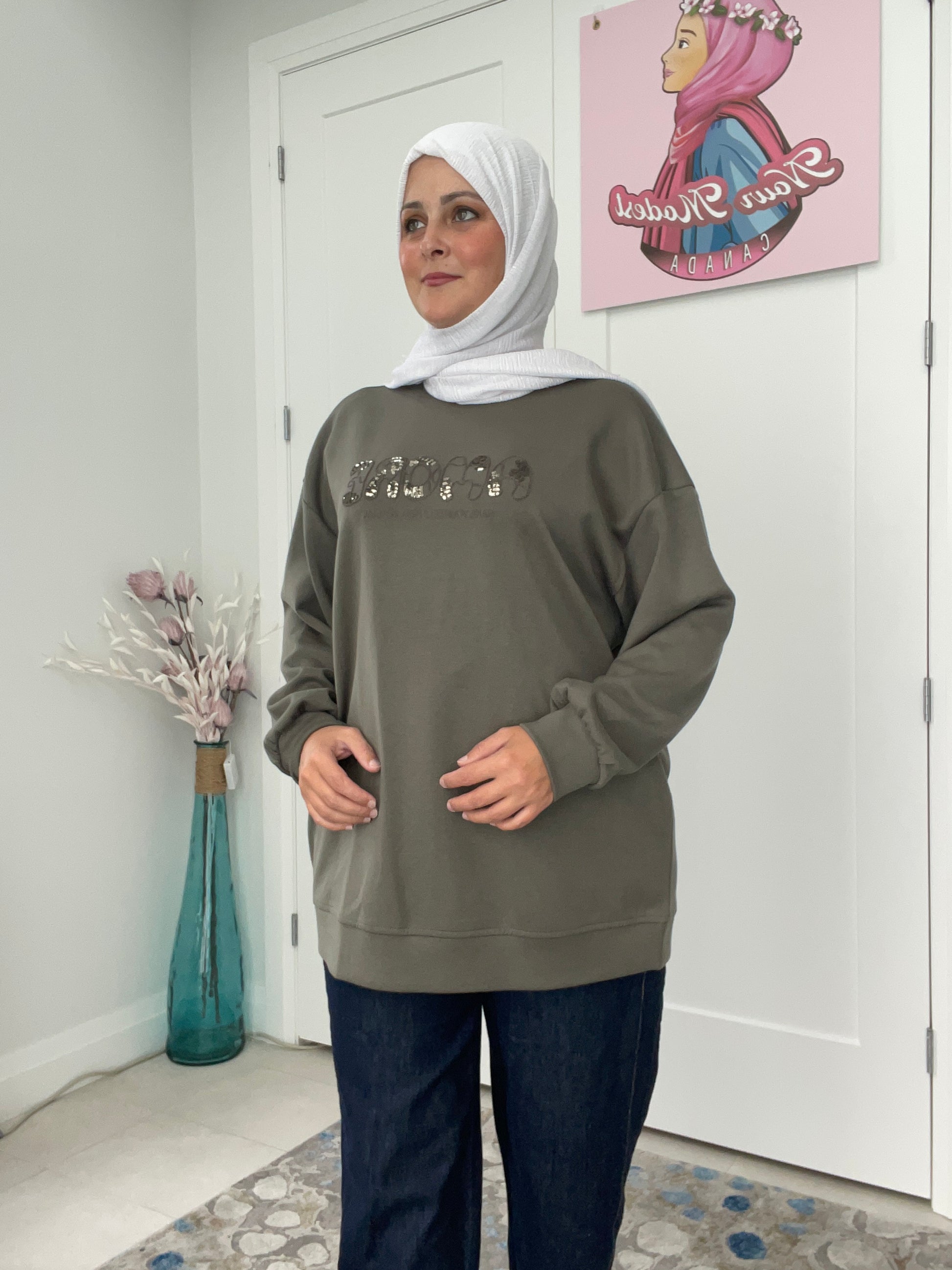 استمتعي بالراحة والأناقة مع كنزة Street Cozy. مصنوعة من قماش ناعم بأسلوب الأويشو، بتصميم واسع One Size يناسب جميع الأجسام. تتميز بـ تطريز أنيق على الصدر يضيف لمسة عصرية لإطلالتك اليومية. مثالية للتنسيق مع الجينز أو أي ستايل كاجوال عملي ومريح. متوفرة بلونين عمليين: العنابي والزيتوني. بطول 80 سم وتناسب الأوزان حتى 90 كغ.