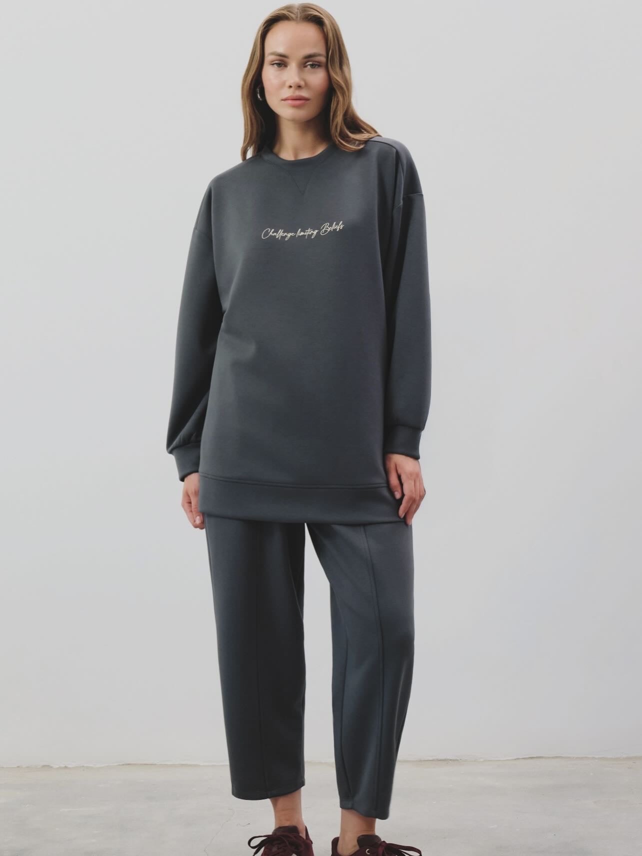 تميزي بإطلالة مريحة وعصرية مع طقم Urban Flow. مصنوع من قماش الأويشو الناعم، ويضم كنزة واسعة مع طبعة أنيقة تضيف لمسة شبابية عصرية، مع بنطلون عملي مزود بجيب. تصميمه يجمع بين الراحة والعملية للحركة اليومية، مثالي لأيام الراحة، الطلعات الكاجوال وحتى للتمارين الخفيفة. متوفر بلونين أنيقين: البني الشوكولا والرمادي الغامق. سهل التنسيق مع السنيكرز لإطلالة سبورتي شيك…